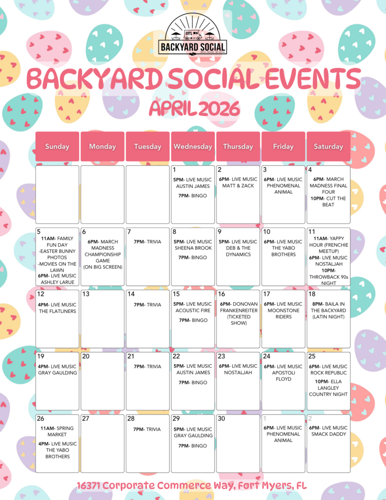 Spring is here, and Backyard Social is turning up the volume. From live concerts and themed nights to community events and holiday celebrations, we’ve packed the next few months with reasons to get out, gather your people, and make memories. Here’s everything coming your way — mark your calendars, because you won’t want to miss a single one.